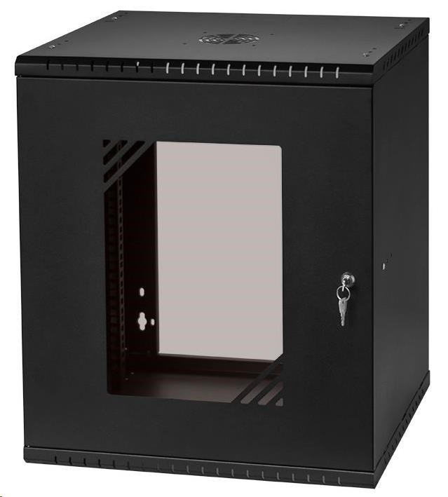 Popis LEXI-Net 19" nástěnný rozvaděč Basic 12U 520x450, skleněné dveře, bez zad, rozložený, černý