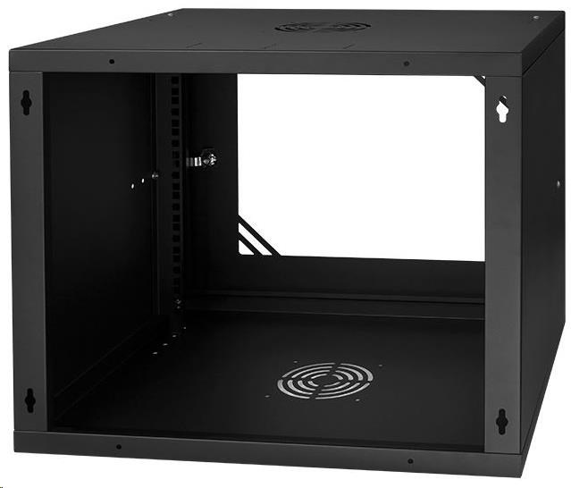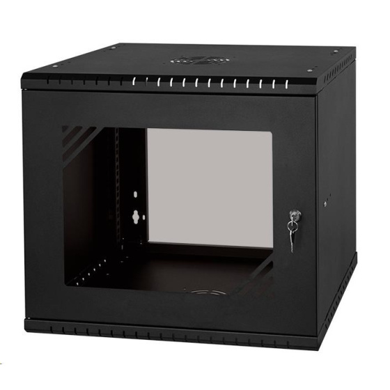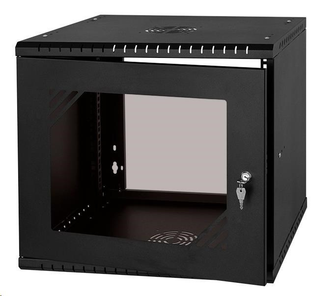 Popis LEXI-Net 19" nástěnný rozvaděč Basic 9U 525x450, skleněné dveře, bez zad, rozložený, černý