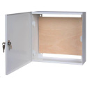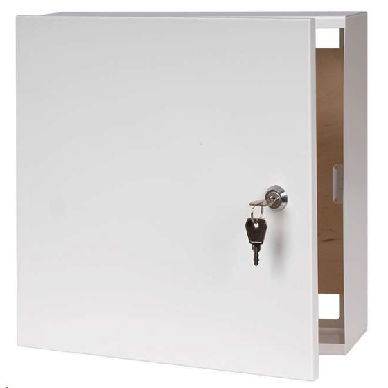 Lexi-Net Basic univerzálna skrinka 300 x 300 x 100 mm, biela Univerzálna uzamykateľná skrinka, povrchová montáž rozmer 300x300x100mm materiál oceľ 0,8mm s práškovou farbou - biela Montážna doska - preglejka 290 x 230 x 8mm Rozmer balenia 305x310x105 hmotnosť netto / s obalom 1,6kg / 1,72kg Krytie IP20..