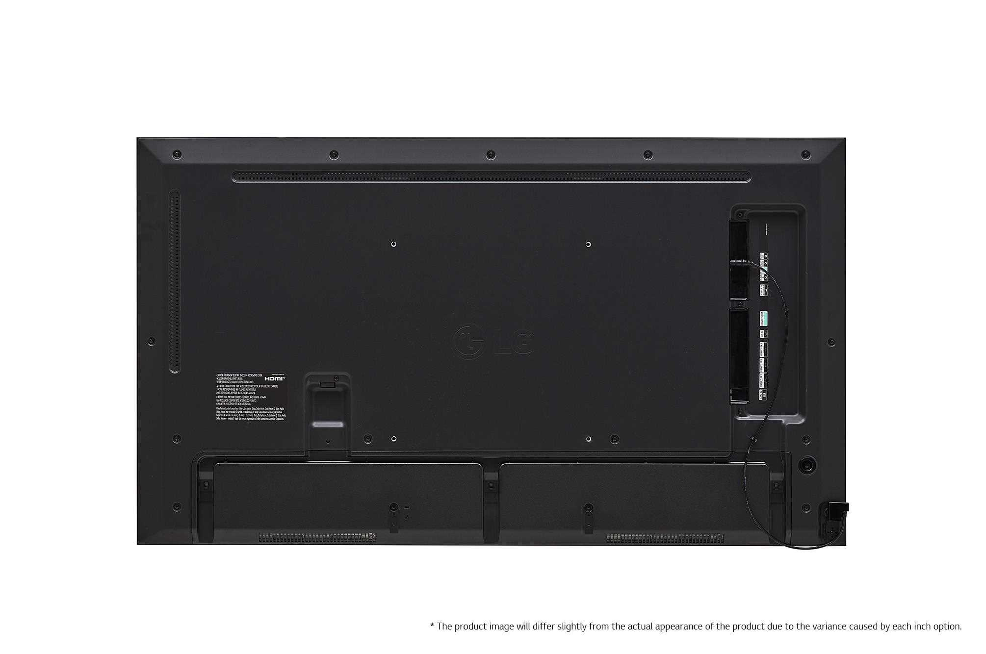 | Kľúčové funkcie | Interná pamäť 16 GB, vestavená Wi-Fi, senzory (teplotný senzor, senzory automatického jasu (externé infračervené), senzor zrýchlenia (gyroskop)), ovládanie miestnymi tlačidlami, zabudovaný reproduktor, webOS 6.0, Plánovanie miestneho obsahu, Správca skupín, USB Plug & Play, Fail Over, Obraz (Obrázok bootovacího loga, Obraz bez signálu), Synchronizácia (Synchronizácia RS-232C, Synchronizácia lokálnej siete), PIP, PBP (4), Zdieľanie obrazovky, Video Tag (4), Prehrávanie cez URL, Rotácia (Rotácia obrazovky, Rotácia externého vstupu), Prehrávanie bez medzier, Nastavenie režimu dlaždíc (Max. 15 × 15), Klonovanie dátových nastavení, SNMP, Metóda ISM, Automatické nastavenie ID, Posielanie správ o stave, Správca riadenia, Kompatibilita s tretími stranami (Cisco Certi, Crestron Connected®), Inteligentná úspora energie, Režim PM, Prebudenie v sieti LAN, Pohotovosť v sieti, maják, HDMI-CEC, Nastavenie servera SI, WebRTC, Pro:Idiom |