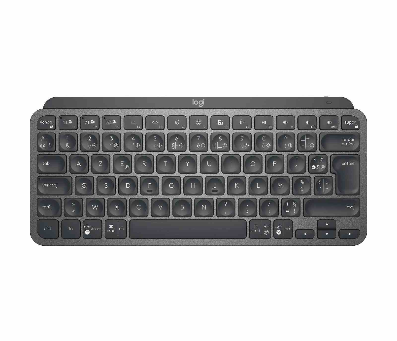 | Minimalistická bezdrôtová podsvietená klávesnica | Pripojenie prostredníctvom technológie Bluetooth Low Energy Klávesy Easy-switch na pripojenie až k trom zariadeniam a jednoduché prepínanie medzi nimi Dosah bezdrôtového pripojenia 10 metrov Snímače priblíženia rukou na aktiváciu podsvietenia Čidlo okolitého osvetlenia na reguláciu jasu podsvietenia Dobíjanie pomocou USB-C, úplné nabitie vydrží až 10 dní – alebo 5 mesiacov pri vypnutom podsvietení Vypínač zap/vyp Indikátory klávesy Caps lock a batérie Kompatibilné s myšami s funkciou Logitech Flow |