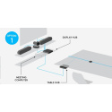 | Rozdeľovač pracovnej plochy Rally | Pripojenie jedným káblom CAT6A k videorozbočovaču Rally (5 m kábel je súčasťou dodávky; kompatibilný s káblami dodanými používateľom do dĺžky 50 m) Aktívna detekcia reproduktorov: analýza zvuku až zo 7 stolových mikrofónov a 56 lúčov každých 8 ms 12-pinový konektor pre stolový mikrofón Rally Pripojenie HDMI typu A k videorozbočovaču (x2) USB typu C USB typu A (vyhradené pre budúce funkcie) USB typu B (pripojenie k počítaču v rokovacej miestnosti) RJ45 (vyhradené pre budúce funkcie) Vstup napájania |