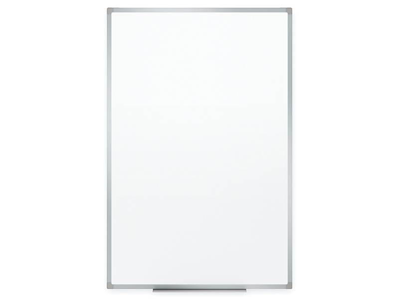 Magnetická tabule s bílým lakovaným povrchem Rozměr 90 x 60 cm Pro popis stíratelným fixem Odkládací lišta na fix Bezúdržbová - mazání za sucha Stylový hliníkový rám Šířka rámu 1,7 cm Světle šedé plastové rohy sladěné s rámem tabule Zadní stěna - hobra Montážní kit součástí balení Možnost montáže i ve vertikálním směru