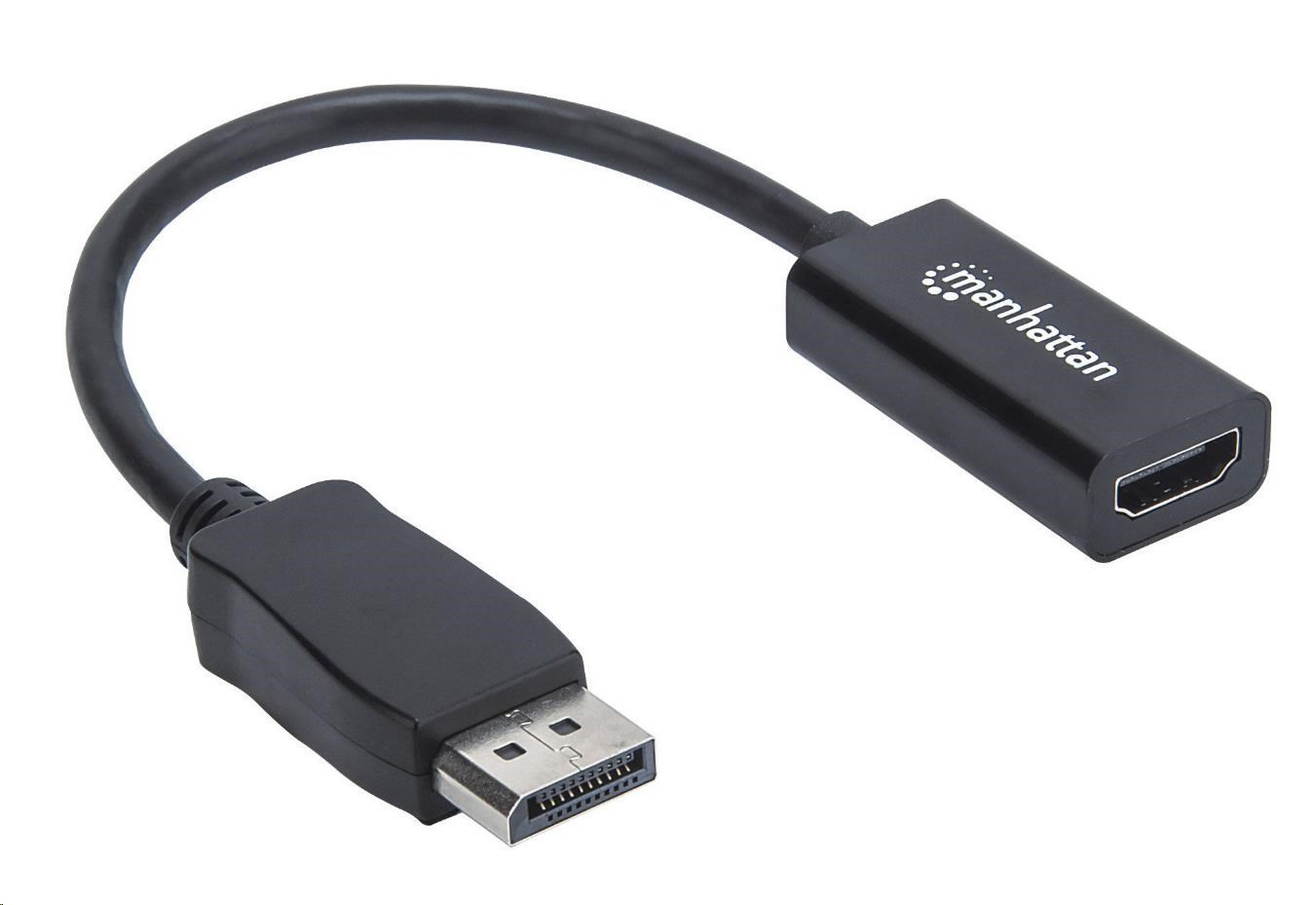 Pasívny adaptér Manhattan DisplayPort na HDMI vytvára rýchle, jednoduché a pohodlné prepojenie medzi novšími zdrojmi vybavenými DisplayPortom a existujúcimi displejmi HDMI. Tento pasívny adaptér vyžaduje grafické karty DP++ (dual-mode) na regeneráciu signálu a zabezpečenie najlepšieho pripojenia k HD displeju. Adaptér sa ľahko a rýchlo inštaluje a nevyžaduje si zložitú konfiguráciu ani nastavenie. Káblový adaptér Manhattan Passive DisplayPort to HDMI určite pomôže používateľom naplno využiť investície, hodnotu a životnosť displejov HDMI. Ponúka pasívne, kompaktné a integrované riešenie, ktoré eliminuje zbytočné káble, spleť a neporiadok a udržuje poriadok v inštaláciách a pracovných priestoroch.
