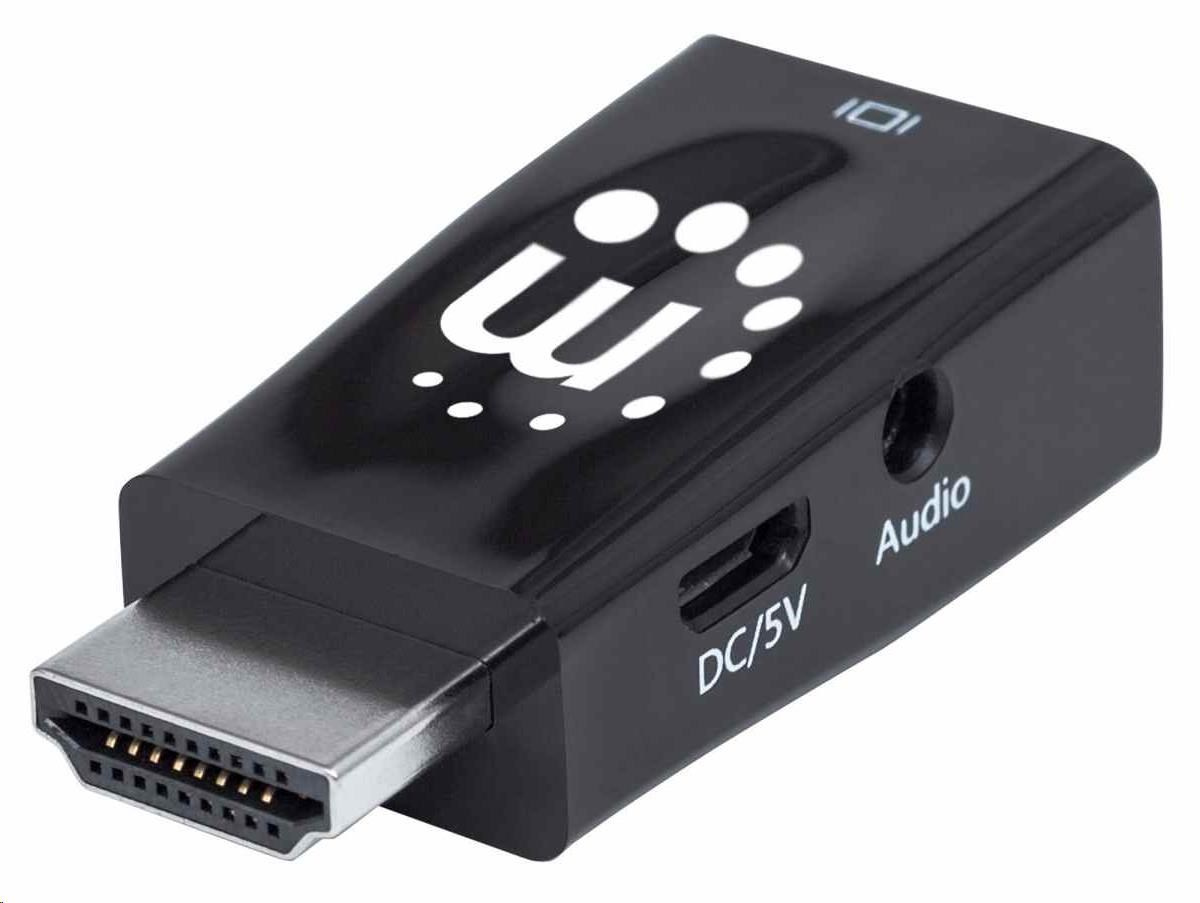 Adaptér Manhattan HDMI na VGA, mikrokonvertor, HDMI samec na VGA samica, audio, čierny