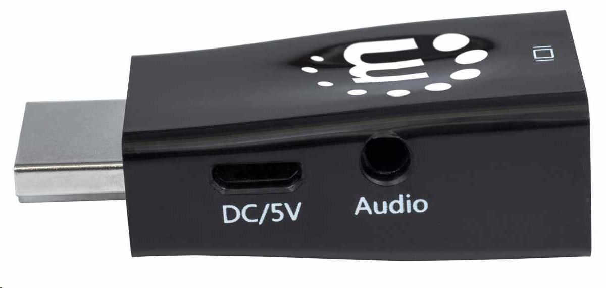 Mikroprevodník Manhattan HDMI na VGA umožňuje rýchle, jednoduché a pohodlné prepojenie medzi novším stolným počítačom, notebookom alebo iným zdrojom médií vybaveným rozhraním HDMI a existujúcim monitorom VGA, projektorom alebo iným zobrazovacím zariadením. Mikroprevodník Manhattan HDMI na VGA sa ľahko a rýchlo inštaluje a nevyžaduje si zložitú konfiguráciu ani nastavenie. Tento prevodník pomáha predĺžiť životnosť starších zobrazovacích zariadení VGA, aby ste mohli čo najlepšie využiť svoju investíciu a plne využiť jej hodnotu. Mikroprevodník Manhattan HDMI na VGA ponúka úsporné a spoľahlivé riešenie s nízkou spotrebou energie, takže používatelia môžu prejsť na šírku pásma HDMI, rozlíšenie, technológiu Deep Color a ďalšie funkcie bez toho, aby museli prechádzať na novšie a drahšie monitory a projektory. Jeho integrovaná konštrukcia typu "všetko v jednom" pomáha dosiahnuť kompaktné, integrované riešenie, ktoré eliminuje zbytočné káble, spleť a neporiadok, aby boli inštalácie a pracovné priestory čisté a usporiadané. Jeho 3.5 mm stereo port umožňuje prevodníku prenášať zvuk do externého zvukového zariadenia a jeho port Micro-USB umožňuje v prípade potreby dodatočné napájanie.