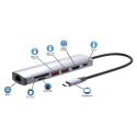 MANHATTAN Dokovací stanice USB-C 7v1, 1xHDMI, 1xUSB-C, 2xUSB, 1xRJ45, čtečka SD karet, šedá