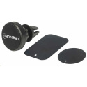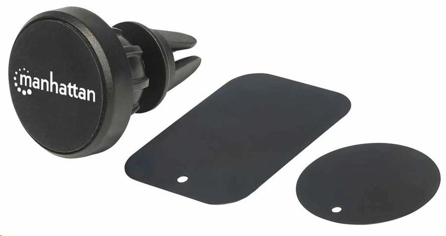 Magnetický držiak telefónu do auta Manhattan Air-Vent možno použiť so všetkými telefónmi a inými zariadeniami na pohodlné a bezpečné upevnenie zariadenia na cestách. Držiak telefónu ponúka dve rôzne veľkosti klipov, takže ho môžete ľahko nainštalovať priamo do vetracieho otvoru väčšiny vozidiel. Priložené magnetické podložky umožňujú pripevnenie zariadenia na výšku aj na šírku. Nastaviteľný, uzamykateľný guľový kĺb ponúka možnosť otáčania o 360°, takže si môžete základňu nakloniť, ako uznáte za vhodné, a vďaka zabudovanej protišmykovej podložke zostane vaše zariadenie v bezpečí pred vibráciami na ceste a nečakanými nárazmi.