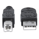 MANHATTAN Hi-Speed USB 2.0 Káble zariadení umožňujú jednoduché pripojenie periférnych zariadení a príslušenstva USB k stolným počítačom a notebookom. Ideálny na použitie s mnohými externými krytmi USB, rozbočovačmi a inými zariadeniami s funkciou hot-swap, plug and play, MANHATTAN Hi-Speed USB 2.0 Káble zariadení podporujú prenos dát rýchlosťou až 480 Mb/s v systémoch Windows a Mac pre rýchle a spoľahlivé prenosy. Pozlátené kontakty, tienenie a plne tvarované pätky s odľahčením ťahu pomáhajú zabezpečiť spoľahlivé pripojenie, maximálnu vodivosť a minimálnu stratu dát pri zníženom rušení EMI.