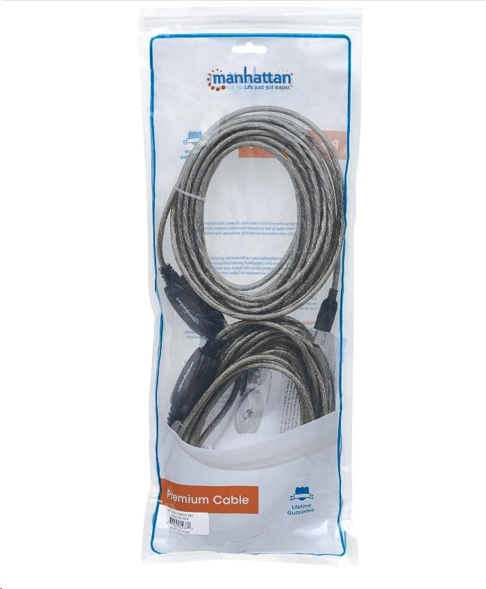 Jednoducho prekonajte obmedzenia vzdialenosti na pripojenie zariadení USB. Pomocou aktívneho kábla Manhattan Hi-Speed USB pripojíte port USB počítača k tlačiarni USB alebo inému zariadeniu USB typu B takmer kdekoľvek v miestnosti. Toto jediné káblové predĺženie, ktoré sa nedá reťaziť, poskytuje pohodlný, neprerušovaný 15 m (50 ft.) pripojenie. Aktívny kábel Manhattan Hi-Speed USB so zabudovaným opakovačom je plne kompatibilný s USB 1.1 a Hi-Speed USB 2.0 špecifikácie, ktoré pomáhajú zariadeniam pracovať na maximálny výkon. Nie je potrebné žiadne externé napájanie ani požiadavky na ovládač. Možnosť zapojenia a používania systému Windows/Macintosh poskytuje väčšie možnosti umiestnenia počítačov a periférnych zariadení a usporiadania kancelárie.
