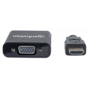 prevodník Manhattan HDMI na VGA pomáha vytvoriť rýchle, jednoduché a pohodlné prepojenie medzi novšími stolnými počítačmi a notebookmi vybavenými rozhraním HDMI a inými zdrojmi médií s existujúcimi monitormi VGA, projektormi a inými zobrazovacími zariadeniami. Prevodník Manhattan HDMI na VGA sa ľahko a rýchlo inštaluje a nevyžaduje si žiadnu zložitú konfiguráciu alebo nastavenie, aby pomohol predĺžiť životnosť a plne využiť investície a hodnotu starších displejov VGA, projektorov a iných zariadení. Toto úsporné, nákladovo efektívne a spoľahlivé riešenie umožňuje používateľom prejsť na šírku pásma HDMI, rozlíšenie, technológiu Deep Color a ďalšie funkcie bez toho, aby museli prechádzať na novšie a drahšie monitory a projektory. Jeho integrovaná konštrukcia typu "všetko v jednom" pomáha dosiahnuť kompaktné, integrované riešenie, ktoré eliminuje zbytočné káble, spleť a neporiadok, aby boli inštalácie a pracovné priestory čisté a usporiadané. Jeho port Micro-USB umožňuje v prípade potreby ďalšie napájanie.