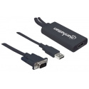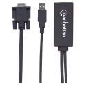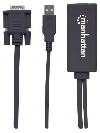 Prevodník Manhattan VGA a USB na HDMI prevádza analógové audio/video signály z PC na formát HDMI pre kompatibilné projektory, ploché HD displeje, televízory a ďalšie zariadenia. Pokročilé zabudované obvody vám umožňujú jednoducho si vychutnať médiá z počítača na displejoch alebo televízoroch s vysokým rozlíšením a zachovať súčasný príjem A/V signálu v zdrojovom počítači. Vysoká šírka pásma podporuje rozlíšenie videa až do 1920 x 1080 a 1080p@60Hz, čo sa výborne hodí na školenia, maloobchodné účely a výstavy. Rýchla inštalácia Plug and Play a kompatibilita so systémami Windows a Mac znamená, že prevodník Manhattan VGA a USB na HDMI uľahčuje poskytovanie digitálneho obsahu uloženého v akýchkoľvek stolových počítačoch a notebookoch.