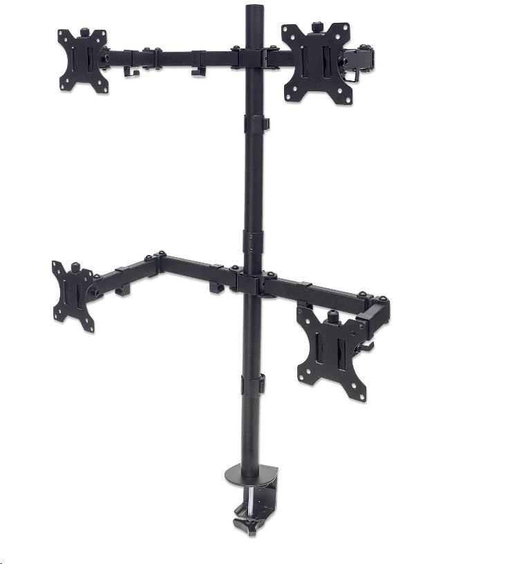 Inštalácia LCD monitora nad pracovný stôl pomáha maximalizovať efektívnosť potenciálneho pracovného priestoru. Univerzálny držiak na štyri monitory Manhattan s dvojlinkovým výkyvným ramenom zlepšuje organizáciu na pracovnej ploche a uľahčuje prácu na počítači.