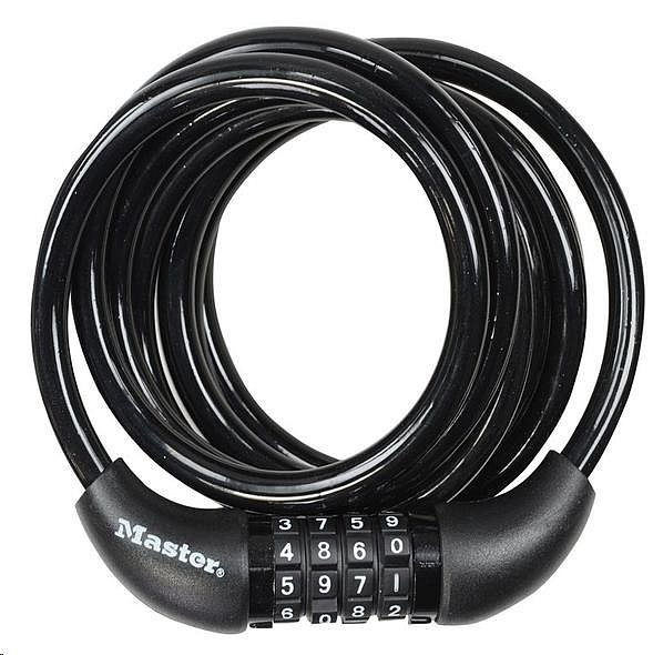 Pevný spirálový kombinovaný kabelový zámok je dlhý 1,8m a má priemer 8mm pre maximálnu pevnosť a pružnosť. Obsahuje integrovaný nastaviteľný 4-ciferný kombinovaný zámok. Jeho vinylový potah zabraňuje poškrabaniu. Vlastné navíjanie pre jednoduché uloženie.