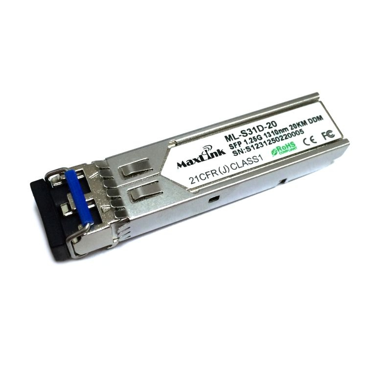 MaxLink 1.25G SFP optický modul, SM, 1310nm, 20km, 2x LC konektor, DDM ML-S31D-20 je 1.25G SFP modul s 1310nm vlnovou délkou, dvěmi LC konektory a maximální vzdáleností 20km po singlemode optickém vlákně. SFP modul podporuje monitoring, neboli DDM funkci.