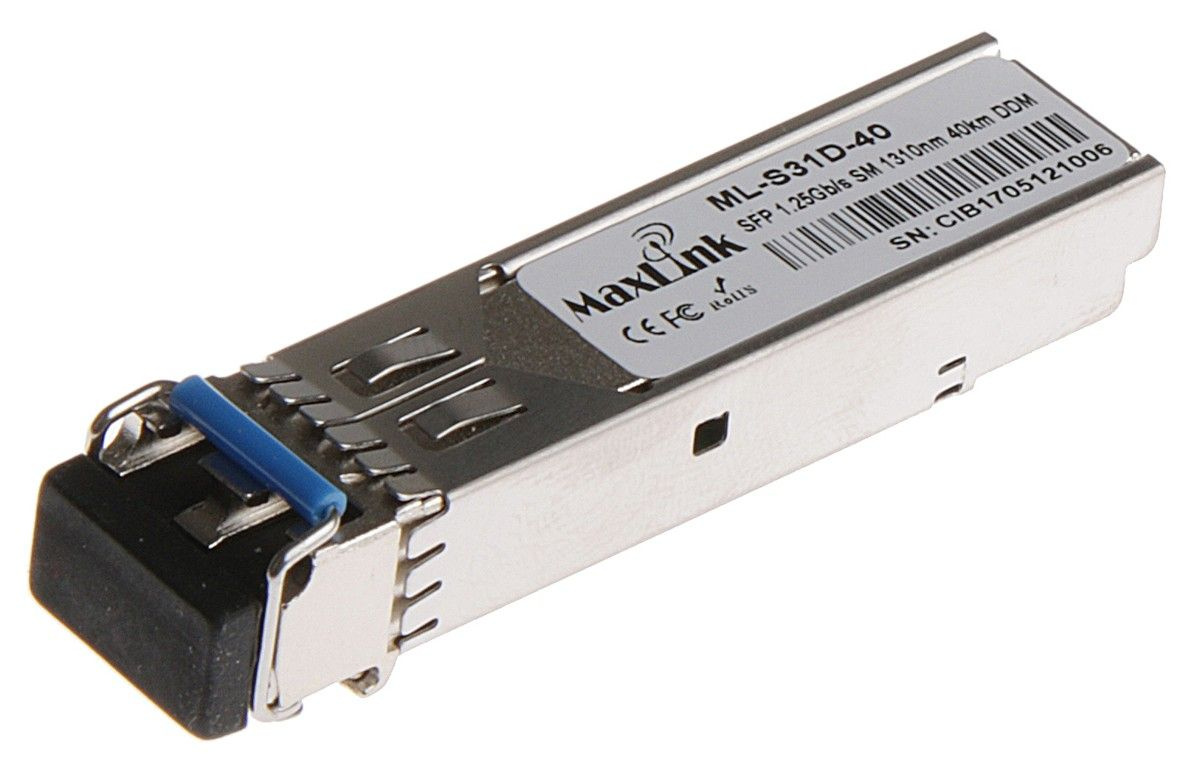 MaxLink 1.25G SFP optický modul, SM, 1310nm, 40km, 2x LC konektor, DDM ML-S31D-40 je 1.25G SFP modul s 1310nm vlnovou délkou, dvěmi LC konektory a maximální vzdáleností 40km po singlemode optickém vlákně. SFP modul podporuje monitoring, neboli DDM funkci.