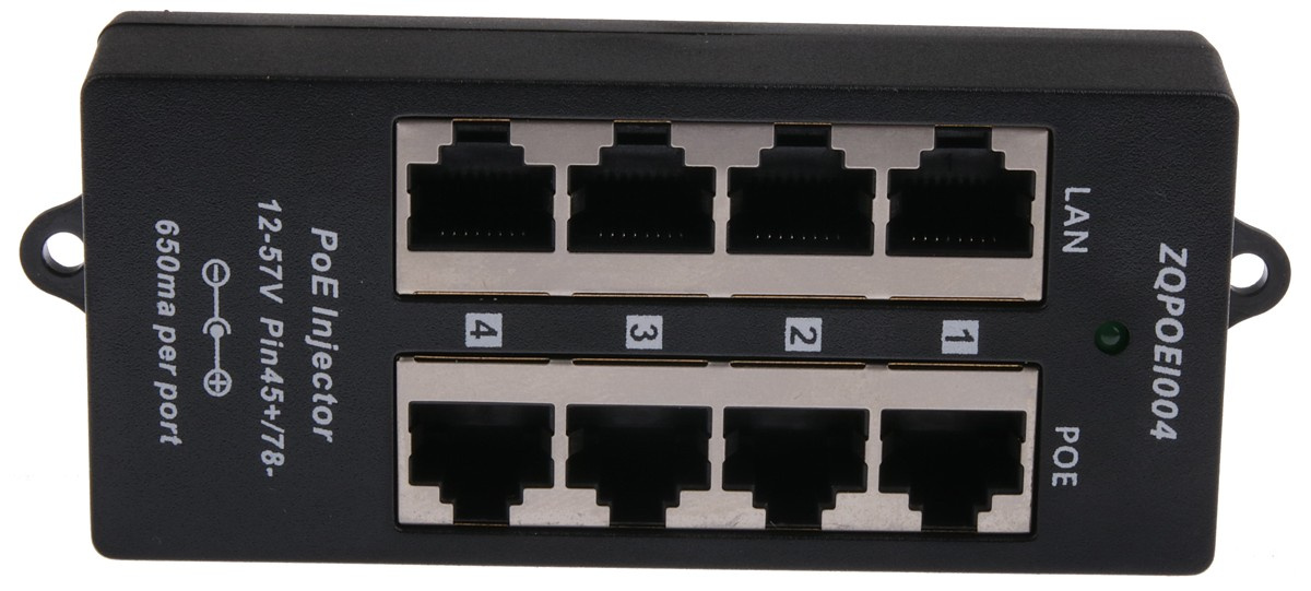 Pasivní PoE injektor lze použít v rozmezí 12 až 57V DC s max. proudem 650mA / port.