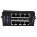 Technické parametry Rychlost ethernetu [Mb/s]: 10/100 Vstupní napětí [V]: 12 .. 57V DC Napájení na pinech: 4,5 (+), 7,8 (-) Počet PoE Out portů: 4 Stínění: Ano LED indikace: Ano Šířka [mm]: 44 Výška [mm]: 100 Hloubka [mm]: 28