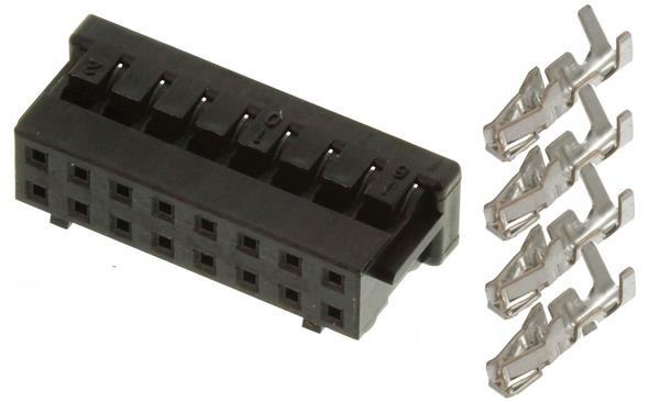 Počet průchozích pinů (dutinek): 4 Počet kontaktů: 16 Počet řad : 2 Rozteč: 2mm Pohlaví: Samice Typ montáže: Kabelová montáž Řada: DF11 Pro použití s: Řada DF11 Orientace těla: Pravý úhel Délka: 18mm Šířka: 5mm Materiál pouzdra: PA