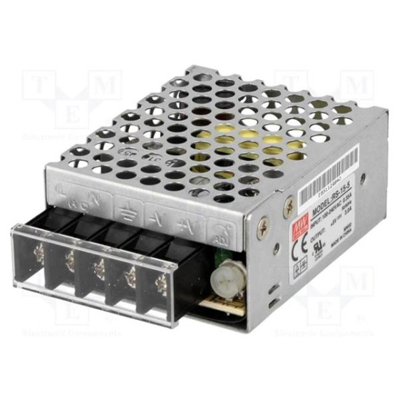 Specifikace: Výrobce: MEAN WELL Typ napájecí zdroje: spínaný Druh napájecí zdroje: modulový Výkon: 15W Výstupní proud: 3A Počet výstupů: 1 Vnější rozměry: 62.5x51x28mm Hmotnost: 130g Pracovní teplota: -25...70°C Elektrické připojení: svorkovnice Montáž: k vestavbě Ochrana: před přetížením OPP, proti přepětí OVP, protizkratové SCP Účinnost: 77% Řada výrobce: RS-15 Druh krytu: 971A Vlastnosti zdrojů/měničů: jmenovitých parametrů dosahuje při plném zatížení Výstupní napětí: 5V DC Napájecí napětí: 88...264V AC / 120...370V DC