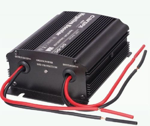 Spínaný zdroj 24VDC/12VDC zajistí provoz 12V spotřebičů z baterie 24V s účinností cca 90%. Napáje