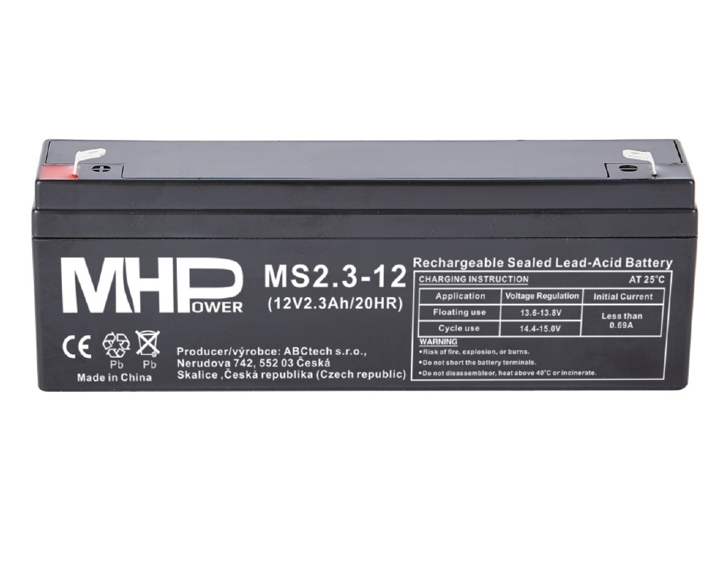 Popis MHPower MS2.3-12 olovený akumulátor AGM 12V/2.3Ah,