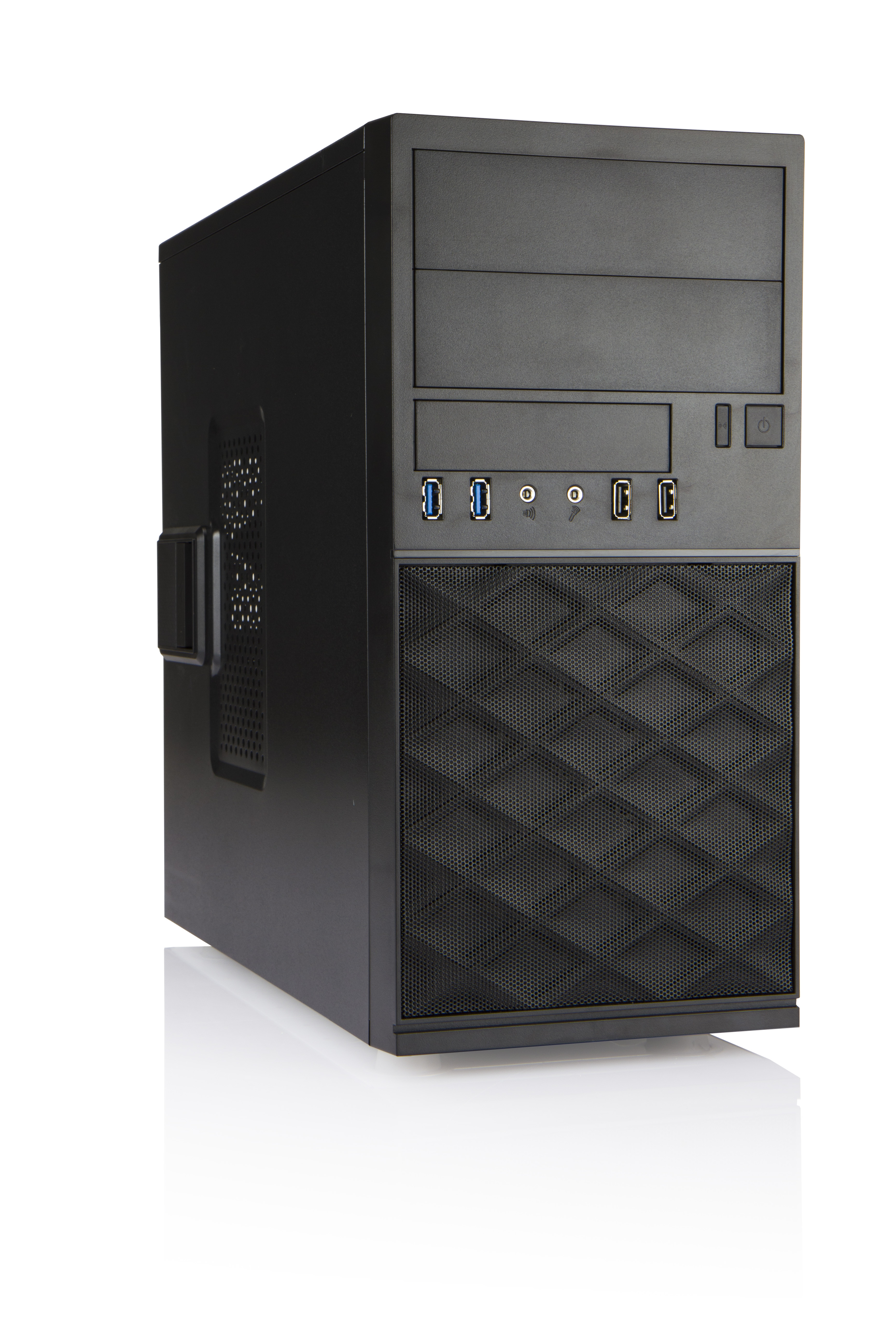 * rozšiřující sloty: 4 x PCI/AGP (podpora grafiky do 305 mm) * rozměry (bez předního čela) (HxWxD): 350 x 170 x 360 mm * barva čela: matná černá * na předním panelu: 2x USB 3.0 + 2x USB 2.0 , HD audio * air duct * všechny hrany zahnuty pro vyšší bezpečnost přimontáži * bezpečnost: skříň splňuje požadavky RoHS, CE,FCC třídy B * zabezpečení prostřednictvím očka pro zámek i Kensington slotem * tooless (včetně PCI karet)