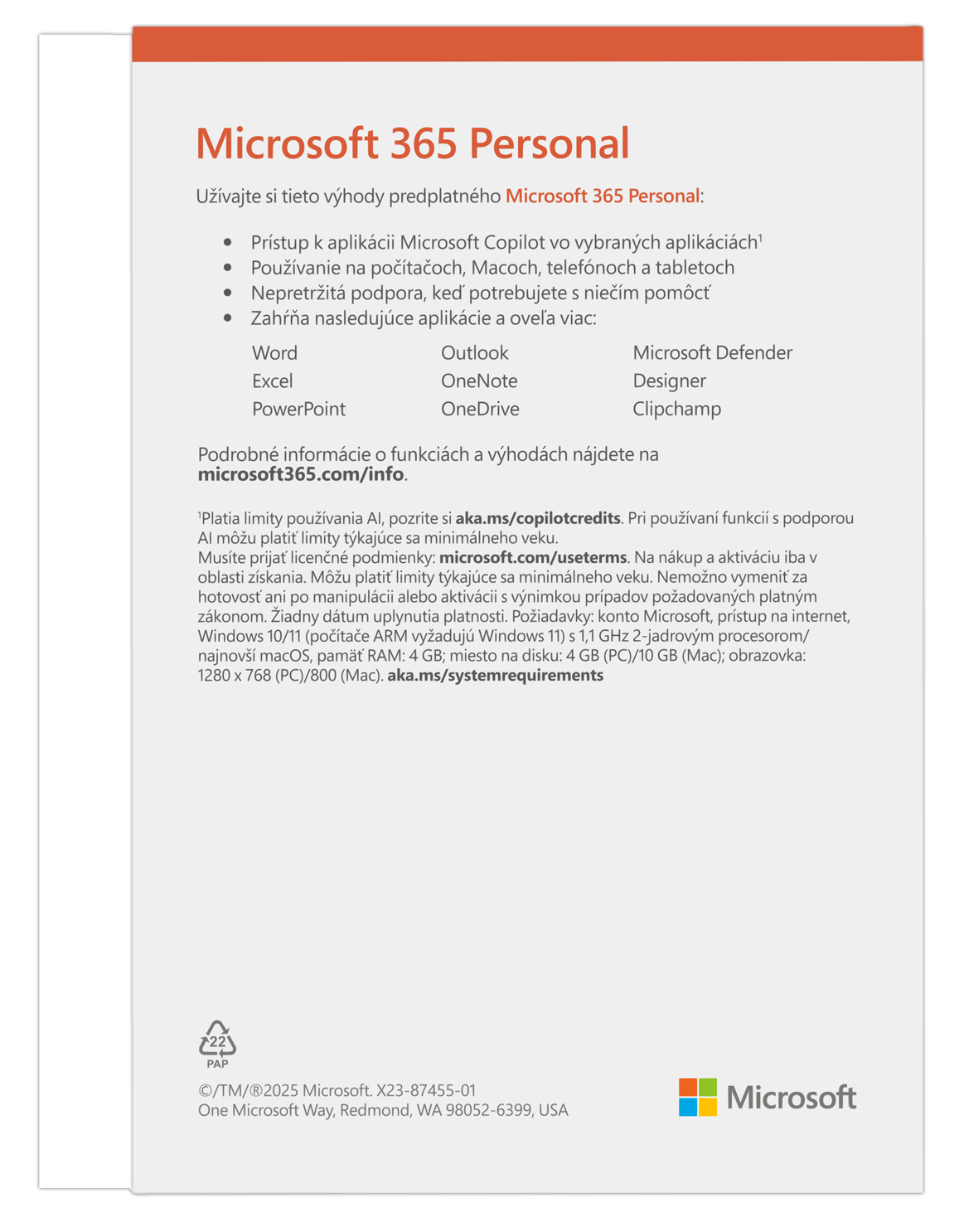 Popis Microsoft 365 Personal FY25H2 Mac/Win, 1 rok, SK