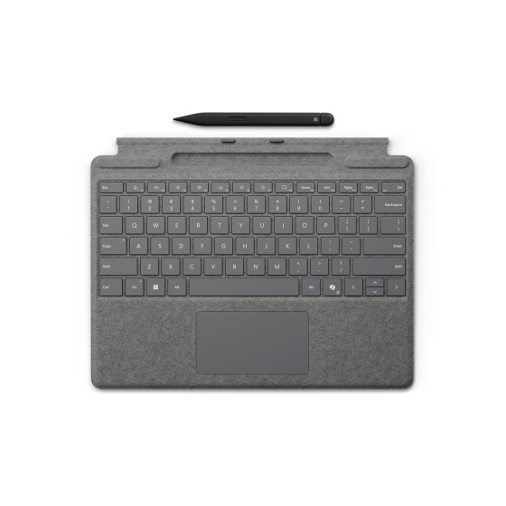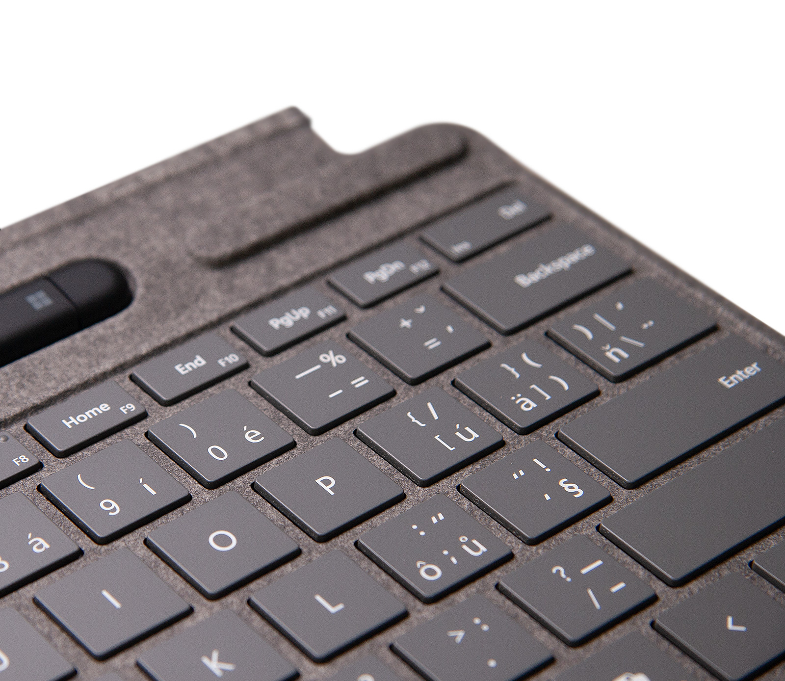 Posuňte všestrannost na novou úroveň s perfektní prémiovou klávesnicí s mechanickými a podsvícenými klávesami, která nabízí skleněný touchpad a zbrusu novou klávesu Copilot, abyste měli AI na dosah ruky. Díky integrovanému slotu Surface Slim Pen máte zajištěné bezpečné a snadné dobíjení.