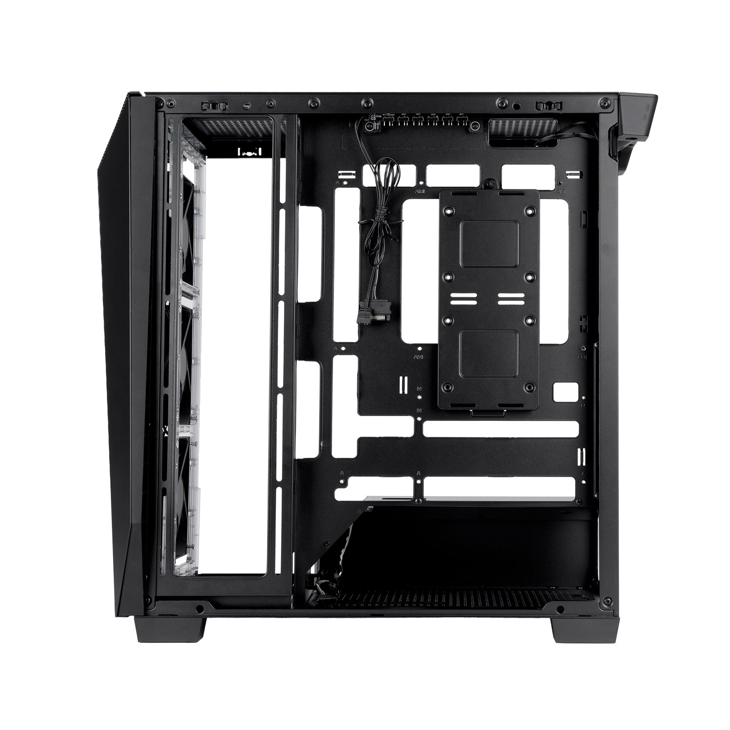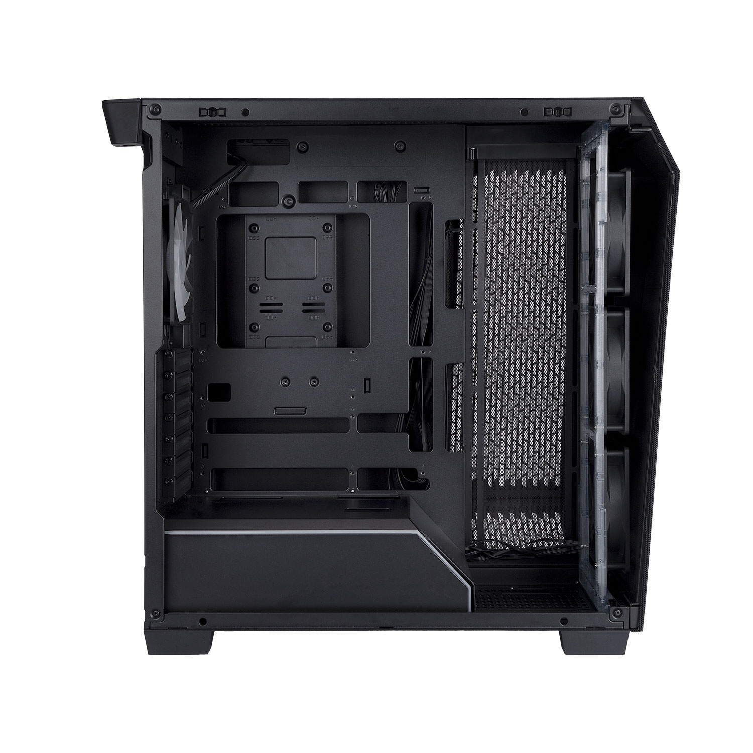 * Světlo odkrývá vše skrze panely s obousměrným zrcadlem * Geometrické sklo poskytuje panoramatický 180° výhled * Pojme až 11 ventilátorů a 240/280/360 mm radiátorů * Zadní rukojeť inspirovaná křídlem pro snadné přenášení * Velké síťové filtry zlepšují chlazení a proudění vzduchu