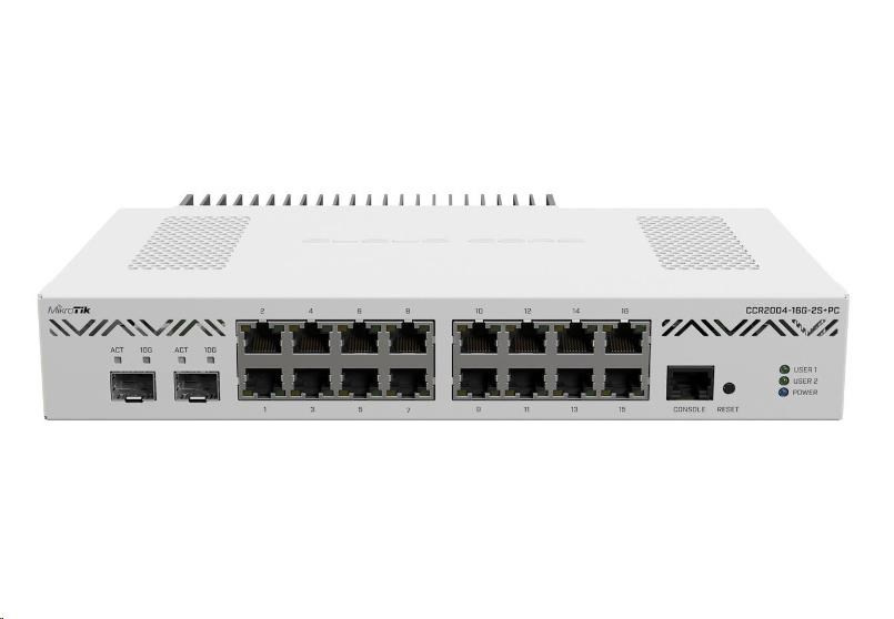 CCR2004-16G-2S+PC je 19" rackový stolný alebo rackový router z novej série smerovačov CCR, ktorý prichádza s pasívnym chladením a najvyšším pomerovým výkonom na 1 jadro zo všetkých CCR, čo je najdôležitejší aspekt pri náročnejších operáciách spracovania na pripojenie (napr. QoS). Router je napájaný procesorom so 64bitovou architektúrou ARM s frekvenciou 1200 MHz, disponuje 4GB DDR4 RAM a 128MB NAND úložiskom.