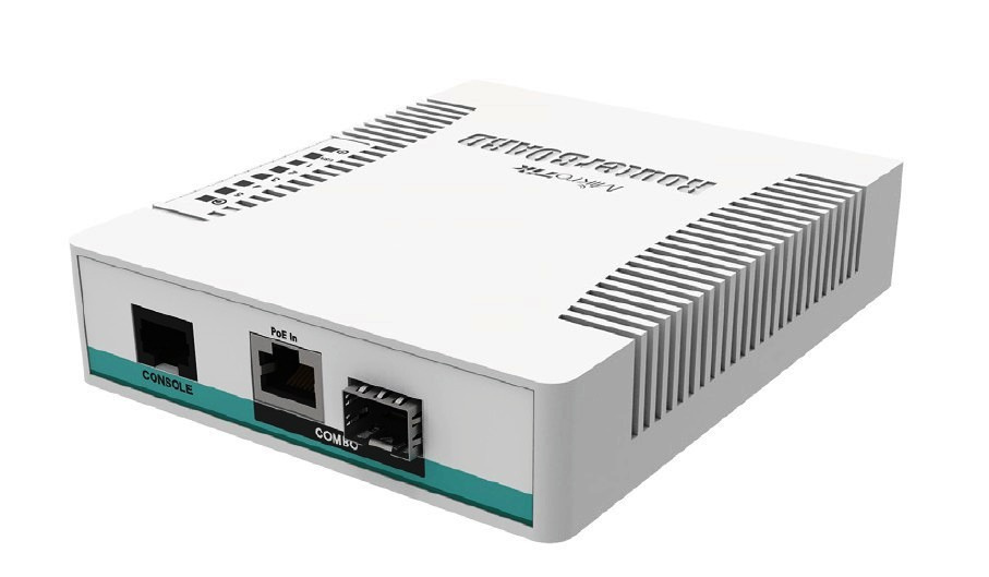 Cloud Router Switch 106-1C-5S je desktop provedení malého switche vybaveného jedním Gigabit Ethernet / SFP combo portem a pěti 1.25Gbps SFP vstupy. Switch osazen 400MHz procesorem a 128MB RAM, obsahuje předinstalovanou RouterOS L5 licenci, napájení 11-30V power. Řešení pro připojení až šesti zařízení s SFP rozhraním.