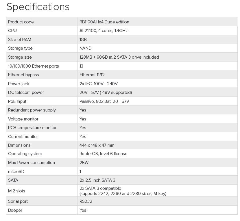 Mikrotik RouterBOARD RB1100Dx4, RB1100AHx4 Dude Edition, 1GB RAM, 4x 1.4 GHz, RouterOS L6