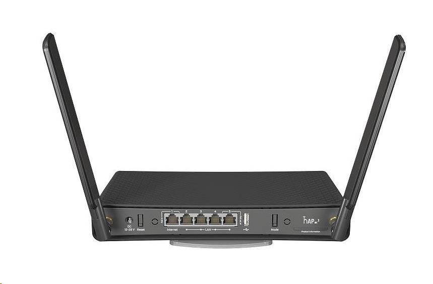 Vďaka celkovo piatim gigabitovým sieťam Ethernet, 256 MB pamäte RAM a štvorjadrovému procesoru dokáže hAP ac3 uspokojiť aj veľké a náročné domácnosti. K dispozícii je štandardný port USB na rozšírenie úložiska. Vďaka inovatívnemu držiaku možno zariadenie namontovať vertikálne alebo horizontálne. Súčasťou balenia je aj súprava na montáž na stenu.