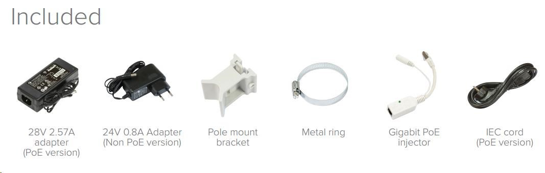 Balenie obsahuje OmniTIK PG-5HacD, injektor PoE, napájací zdroj, montážnu sadu na stožiar