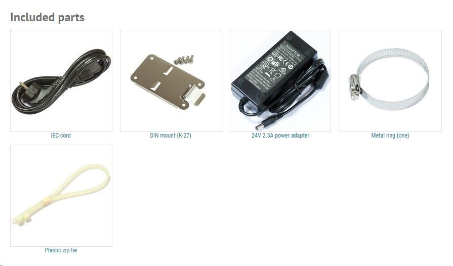 | PoE | Porty 2 - 5, 802.3af/at, max. 1 A na port (vstup < 30 V), max 450 mA per port (input >30 V), max. celkový výkon: 2 A |