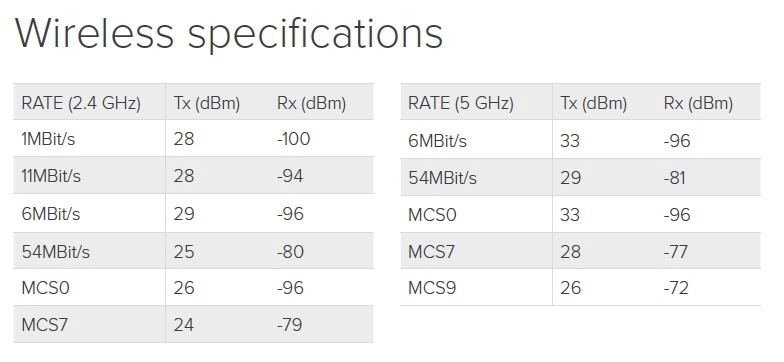 Citlivost (dBm): - 100 (1 mbps) až - 72 (MCS9) dBm