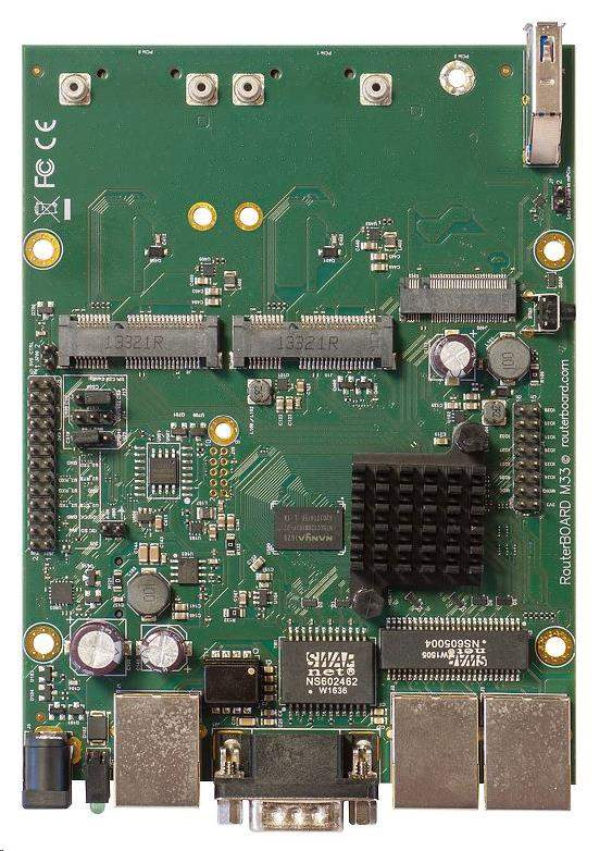 je vybavený tromi gigabitovými.ethernet. prvý (eth0) podporuje pasívne napájanie PoE v rozsahu 10-30 V. Na doske sa nachádzajú aj dva sloty PCIe a dva sloty na SIM karty, takže je možné osadiť dva modemy LTE alebo kombináciu kariet LTE + WiFi. Na rozšírenie priestoru na disku možno použiť slot na kartu SD alebo slot M.2 pre rýchle disky SSD.