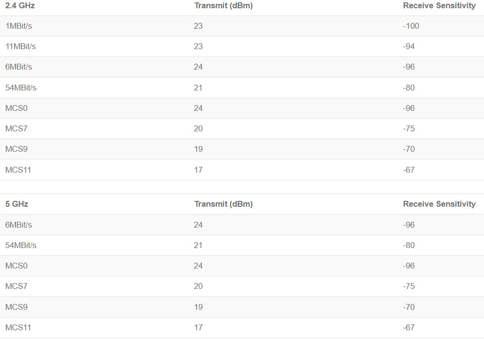 Standardy bezdrátového připojení 2,4 GHz: 802.11b/g/n/ax