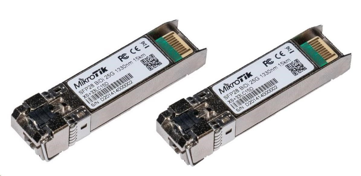 Popis Mikrotik SFP28 optický modul XS+2733LC15D, SM, 15km, 1/10/25G, 15km, 1xLC