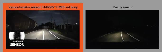 Vysoce kvalitní snímač STARVIS ™ CMOS od Sony zajišťuje špičkový kontrast, jasné a bohaté barvy zejména i za špatných světelných podmínek. Citlivost blížící se infračervenému pásmu znamená, že se palubní kamera svými parametry téměř blíží nočnímu vidění.