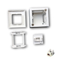 Komplet zásuvka obsahuje tyto položky: 1ks Instalační krabice 80 x 80mm (Rozměry: 84 x 84 x 41 mm) 1ks tělo zásuvky 80 x 80 mm pro 1ks modul (45 x 45) (Rozměry: 80 x 80 x 9 mm) 1ks Modul pro keystone (45 x 45mm) 1ks UTP Keystone Cat.5e bílý