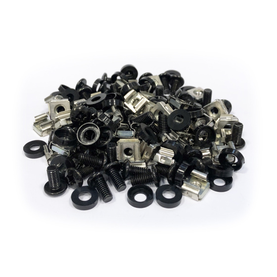 Balení obsahuje: - 50 x šroub M6 délka 12 mm černý - 50 x klecová matice M6 pozink - 50 x podložka M6 černá.