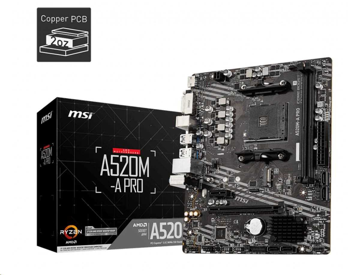 Popis MSI MB Sc AM4 A520M-A PRO, AMD A520, 2xDDR4, m-ATX