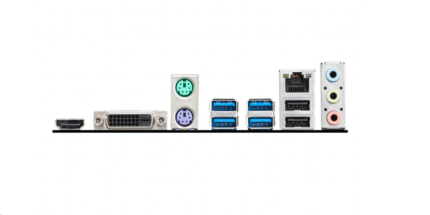 • 6x USB 2.0 (2 porty typu A na zadnom paneli, 4 porty cez interný USB 2.0 konektorov)