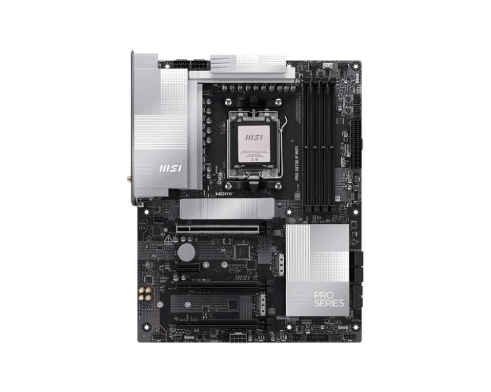 PRO X870E-P WIFI ponúka jednoduchý dizajn s harmónickým strieborným farebným schémou, ktorý dokonale ladí s bielymi aj čiernymi zostavami PC. Je vybavený mnohými exkluzívnymi funkciami MSI, skutočné Wi-Fi 7 s EZ Antenna, 5G LAN, PCIe 5.0 M.2 s EZ M.2 Shield Frozr II a Navýšeným PCIe napájaním, pripravený na procesory AMD Ryzen 9000 série.