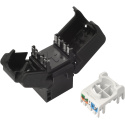 Samořezné keystony Solarix se vyznačují velmi jednoduchou instalací, ke které není nutné použít zařezávací nástroj. Tyto keystony bez problémů splňují parametry specifikované v mezinárodních standardech strukturované kabeláže ANSI/TIA 568, ISO/IEC 11801 a EN 50173 pro kategorii 5E a třídu vedení Class D, včetně všech nejnovějších dodatků. Keystony jsou osazeny 180° samořeznou svorkovnicí, která je označena barevným schématem podle typu zapojení, a to buď podle standardu T568A, nebo T568B. Do této svorkovnice je možné zařezat kabely typu drát s vodiči o velikosti AWG 26 – 22. Standardní barva nestíněných samořezných keystonů Solarix je černá, u stíněné verze je tělo modulu opatřeno stříbrnou kovovou částí. Díky svým kompaktním rozměrům jsou tyto samořezné keystony kompatibilní s modulárními zásuvkami většiny výrobců (např. ABB, Schneider, Legrand, Moeller, Hager, Obzor atd.). Tuto kompatibilitu si můžete ověřit v tabulce kompatibility, která se nachází v záložce "Odkazy".
