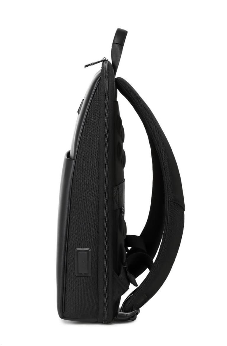 MYBALO ASTON Perfektní volba pro minimalisty s dobrým vkusem 6 ikon: - Nejtenčí batoh - Elegantní - Kapsa na notebook do 15,6" - Kapsa na tablet do 9" - Otevírání o 180 stupňů - USB a USB-C port - Drží tvar - Voděodolný - Skryté kapsy Elegantní a minimalistický Jedná se o velmi elegantní a minimalistický batoh. S tímto parťákem neuděláte chybu při běžném nošení do města, ani na důležité schůzce. Tenký batoh MYBALO Aston je batoh s vůbec nejmenší hloubkou z naší nabídky. Díky tomu působí elegantně a minimalisticky, ale i přesto se do něj vejdou všechny vaše nezbytnosti. Kvalitní voděodolný materiál, dlouhá životnost Kvalitní umělá kůže zajišťuje trvanlivost a odolnost batohu proti vodě a opotřebení. MYBALO Aston tak bude vaším společníkem opravdu dlouho. Drží tvar Batoh si zachovává svůj tvar také v případě, že jej budete mít úplně prázdný. Vestavěný USB a USB-C port Nabíjejte svá elektronická zařízení kdekoli a kdykoli díky vestavěnému USB a USB-C portu. Popruh k uchycení na kufr Cestujte pohodlně. Kdykoli chcete mít volná záda, jednoduše připevněte batoh na rukojeť svého kufru. Pohodlné polstrování Užijte si komfortní nošení díky kvalitnímu a prodyšnému polstrování ramenních popruhů a zádové části. Další praktické kapsy Zorganizujte si pohodlně a snadno své věci díky množství vychytaných kapes. Skryté kapsy V zádové části a na ramenním popruhu najdete skryté kapsy pro bezpečné uložení cenností. Vnitřní kapsy Vnitřní kapsy slouží pro snadnou organizaci všech vašich věcí. Přední kapsa Přední kapsa je určena pro věci, které chcete mít rychle a snadno po ruce. Parametry: - Rozměry: 46 x 30 x 9 cm - Objem: 11 l - Hmotnost: 1,19 kg - Kapsa na notebook: Ano (do vel. 15,6") - Kapsa na tablet: Ano (do vel. 9") - USB port: Ano - Voděodolnost: Ano - Hlavní materiál: Ekokůže + Polyester - Podšívka: Polyester - Barva: Černá