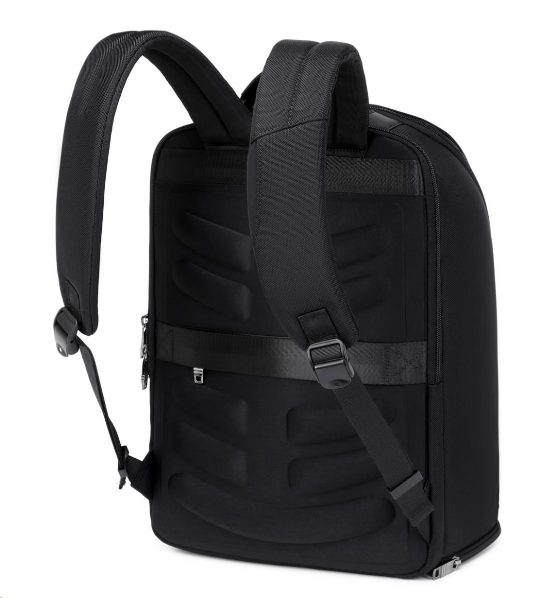 MYBALO ASTON Perfektní volba pro minimalisty s dobrým vkusem 6 ikon: - Nejtenčí batoh - Elegantní - Kapsa na notebook do 15,6" - Kapsa na tablet do 9" - Otevírání o 180 stupňů - USB a USB-C port - Drží tvar - Voděodolný - Skryté kapsy Elegantní a minimalistický Jedná se o velmi elegantní a minimalistický batoh. S tímto parťákem neuděláte chybu při běžném nošení do města, ani na důležité schůzce. Tenký batoh MYBALO Aston je batoh s vůbec nejmenší hloubkou z naší nabídky. Díky tomu působí elegantně a minimalisticky, ale i přesto se do něj vejdou všechny vaše nezbytnosti. Kvalitní voděodolný materiál, dlouhá životnost Kvalitní umělá kůže zajišťuje trvanlivost a odolnost batohu proti vodě a opotřebení. MYBALO Aston tak bude vaším společníkem opravdu dlouho. Drží tvar Batoh si zachovává svůj tvar také v případě, že jej budete mít úplně prázdný. Vestavěný USB a USB-C port Nabíjejte svá elektronická zařízení kdekoli a kdykoli díky vestavěnému USB a USB-C portu. Popruh k uchycení na kufr Cestujte pohodlně. Kdykoli chcete mít volná záda, jednoduše připevněte batoh na rukojeť svého kufru. Pohodlné polstrování Užijte si komfortní nošení díky kvalitnímu a prodyšnému polstrování ramenních popruhů a zádové části. Další praktické kapsy Zorganizujte si pohodlně a snadno své věci díky množství vychytaných kapes. Skryté kapsy V zádové části a na ramenním popruhu najdete skryté kapsy pro bezpečné uložení cenností. Vnitřní kapsy Vnitřní kapsy slouží pro snadnou organizaci všech vašich věcí. Přední kapsa Přední kapsa je určena pro věci, které chcete mít rychle a snadno po ruce. Parametry: - Rozměry: 46 x 30 x 9 cm - Objem: 11 l - Hmotnost: 1,19 kg - Kapsa na notebook: Ano (do vel. 15,6") - Kapsa na tablet: Ano (do vel. 9") - USB port: Ano - Voděodolnost: Ano - Hlavní materiál: Ekokůže + Polyester - Podšívka: Polyester - Barva: Černá