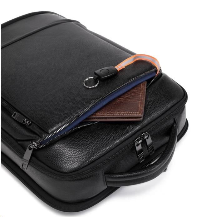 Samostatná priehradka na laptop z mäkkého semišu zaručuje bezpečné a praktické uloženie vášho elektronického zariadenia.